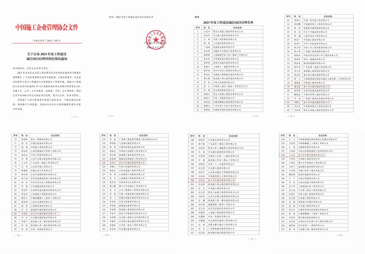 近日,中國施工企業(yè)管理協(xié)會公布《關(guān)于公布2023年度工程建設(shè)誠信企業(yè)家評價結(jié)果的通知》和《關(guān)于公布2023年度工程建設(shè)誠信項(xiàng)目經(jīng)理評價結(jié)果的通知》的文件,浙江環(huán)宇建設(shè)集團(tuán)有限公司董事長宋良榮獲“2023年度工程建設(shè)誠信企業(yè)家”稱號,項(xiàng)目經(jīng)理褚永勝、鄧殿才、何國銘、金偉興、劉劍龍和王永東榮獲“2023年度工程建設(shè)誠信項(xiàng)目經(jīng)理”稱號。
