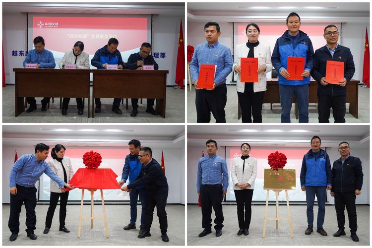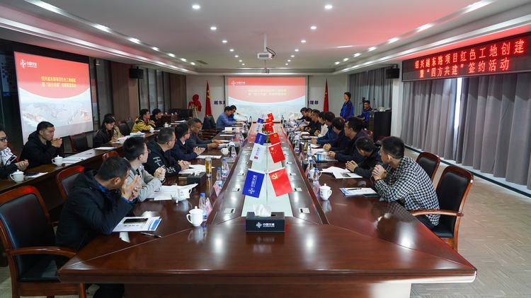 為更好地學(xué)習(xí)貫徹習(xí)近平新時代中國特色社會主義思想主題教育,推動“學(xué)思想、強黨性、重實踐、建新功”總要求,推進主題教育走深走實,以黨建聯(lián)建共建促進項目高質(zhì)量發(fā)展,我公司與中交三航局聯(lián)合體承建的越東路二期I標項目部組織舉辦了“紅色工地”創(chuàng)建暨“四方共建”簽約儀式。紹興市質(zhì)安中心第二黨支部書記干繼紅,平水鎮(zhèn)機關(guān)第三黨支部委員婁陳華,基建公司副總經(jīng)理、越東路二期Ⅰ標臨時聯(lián)合黨支部書記方炳,基建公司副總經(jīng)理董高鐘,基建公司副總經(jīng)理沈鑫濤,中交三航局公司黨委工作部部長鮑瓊曄,項目書記張冬冬,中交項目經(jīng)理王積應(yīng),我公司項目經(jīng)理隋云剛及各支部黨員代表等共同參與活動。