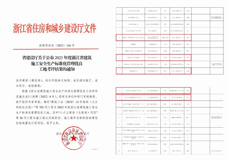 近日,浙江省住房和城鄉(xiāng)建設(shè)廳公布了《省建設(shè)廳關(guān)于公布2023年度浙江省建筑施工安全生產(chǎn)標(biāo)準(zhǔn)化管理優(yōu)良工地考評(píng)結(jié)果的通知》。由我司承建的陽(yáng)明故里整體開(kāi)發(fā)建設(shè)項(xiàng)目——陽(yáng)明故居及紀(jì)念館、錢(qián)清鎮(zhèn)中心幼兒園新建工程項(xiàng)目、S308省道(二環(huán)西路智慧快速路)改造工程(非涉鐵段)項(xiàng)目、杭州市第七人民醫(yī)院浙西院區(qū)一期工程項(xiàng)目、浙江宇視科技有限公司安防產(chǎn)品產(chǎn)業(yè)化基地項(xiàng)目榮獲“2023年度浙江省建筑施工安全生產(chǎn)標(biāo)準(zhǔn)化管理優(yōu)良工地”。