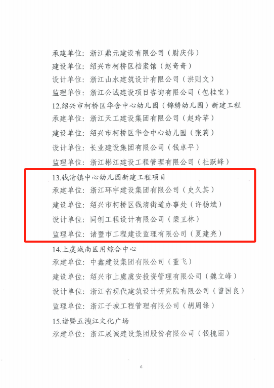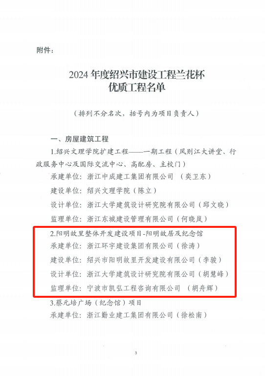 【概要描述】近日,紹興市住房和城鄉(xiāng)建設(shè)局公布了“紹興市住房和城鄉(xiāng)建設(shè)局關(guān)于公布2024年度紹興市建設(shè)工程蘭花杯(優(yōu)質(zhì)工程)考核認(rèn)定名單的通知”。由我司承建的陽明故居及紀(jì)念館項(xiàng)目、錢清鎮(zhèn)中心幼兒園新建工程項(xiàng)目、308省道(二環(huán)西路智慧快速路)改造工程(非涉鐵段)三個項(xiàng)目榮獲“2024年度紹興市建設(shè)工程蘭花杯(優(yōu)質(zhì)工程)”。