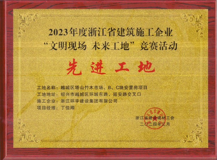 近日,由我司承建的越城區(qū)塔山竹木市場(chǎng)B、C塊安置房項(xiàng)目喜獲2023年度浙江省“文明現(xiàn)場(chǎng)、未來(lái)工地”競(jìng)賽活動(dòng)先進(jìn)工地。