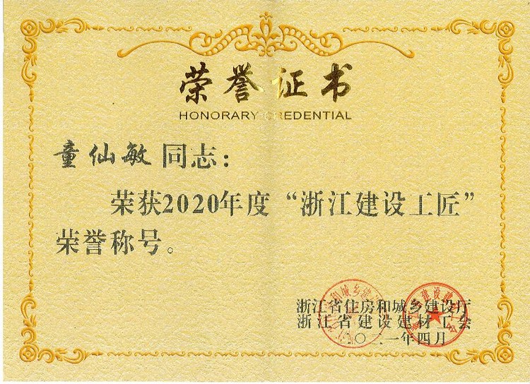 童仙敏自1994年進入公司以來,立足崗位,敬業(yè)奉獻,嚴格要求自己,不斷提升自身業(yè)務能力,先后獲得浙江省勞動模范、浙江省五一勞動獎章、紹興市專業(yè)技術拔尖人才與學科技術帶頭人、全國建筑業(yè)科技進步與技術創(chuàng)新先進個人、浙江省建設工匠、紹興市建設系統(tǒng)優(yōu)秀共產黨員等榮譽。