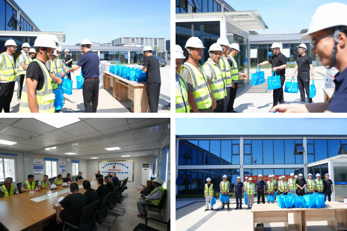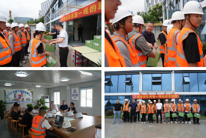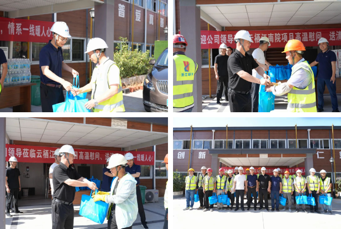 慰問活動中,集團領(lǐng)導詳細詢問了工程進度、評優(yōu)以及防暑保障落實情況,向奮戰(zhàn)在項目一線的員工表示衷心的感謝,并為他們分發(fā)防暑降溫用品。