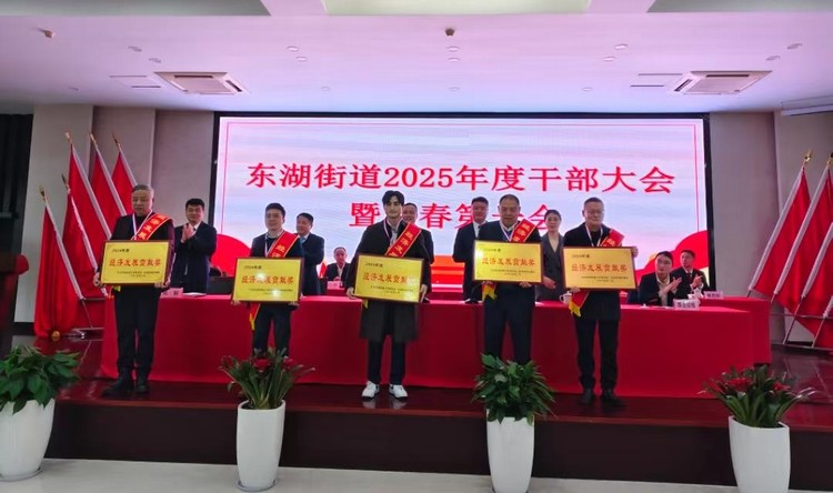 【概要描述】集團(tuán)下屬浙江環(huán)宇裝潢有限公司榮獲東湖街道頒發(fā)的”2024年度經(jīng)濟(jì)發(fā)展貢獻(xiàn)獎(jiǎng)“,裝潢公司總經(jīng)理劉興潮代表裝潢公司上臺(tái)領(lǐng)獎(jiǎng)。