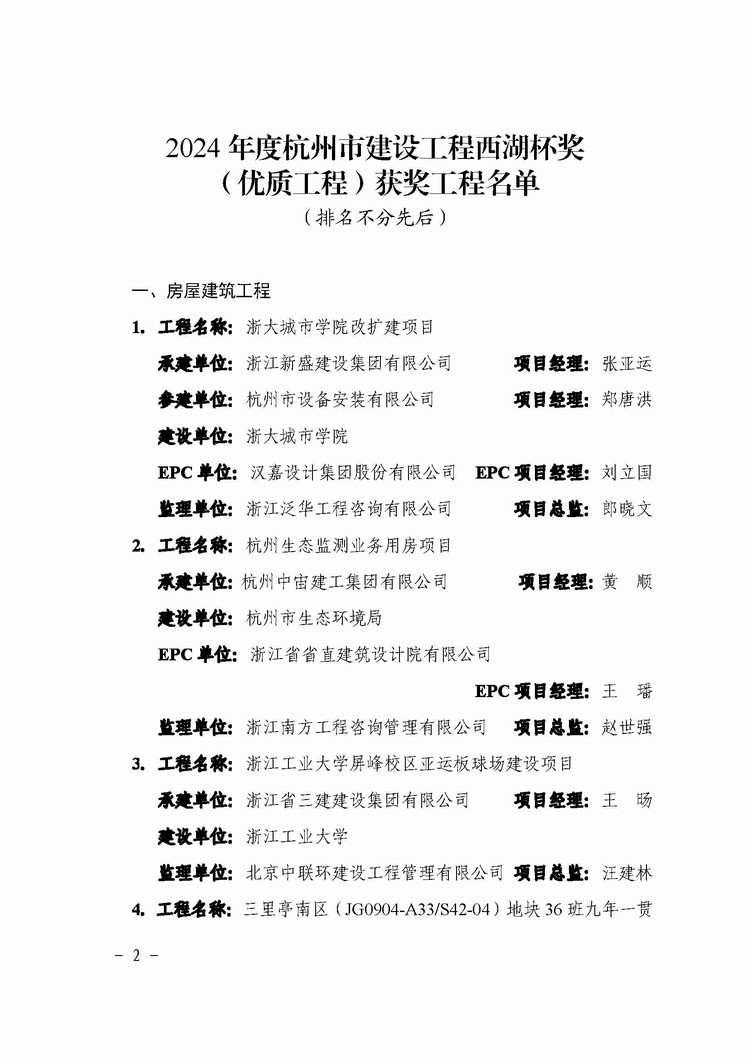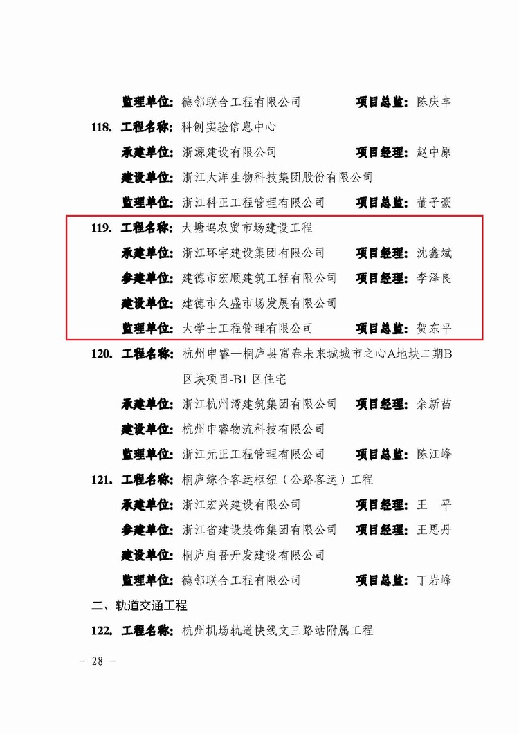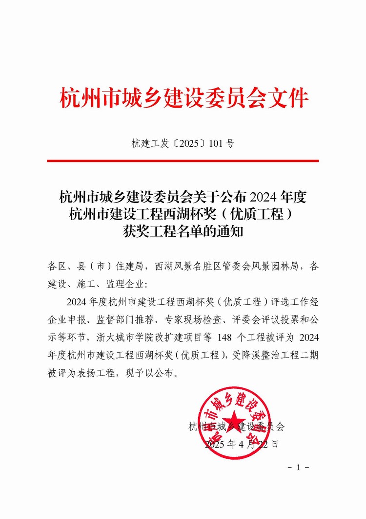 近日,杭州市城鄉(xiāng)建設委員會公布了2024年度杭州市建設工程西湖杯獎(優(yōu)質工程)獲獎工程名單,由我司承建的余政儲出【2019】60號地塊開發(fā)項目和大塘塢農(nóng)貿(mào)市場建設工程兩個項目獲此殊榮。